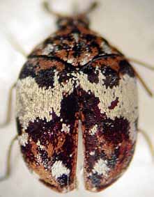 Anthrenus pimpinellae var. dorsatus Mulsant & Rey, 1868 Anthrenus pimpinellae var. niveus Reitter, 1881 Anthrenus pimpinellae var. niveipennis J. Sahlberg, 1903 Anthrenus fasciatus var. isabellinus: Escalera, 1914 Anthrenus pimpinellae ssp. isabellinus: Beal, 1998 Anthrenus pimpinellae var. dorsatus: Mroczkowski, 1968 Anthrenus goliath: Cornacchia, 2002 Anthrenus dorsatus: Háva, 2003 Anthrenus pimpinellae isabellinus: Háva & Nardi, 2004 Anthrenus chikatunovi Holloway, 2020 Anthrenus pimpinellae ab. italicus Obenberger (unpublished) Anthrenus sardinianus Kalík (unpublished) Anthrenus goliath var. alba Pic (unpublished) |